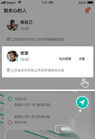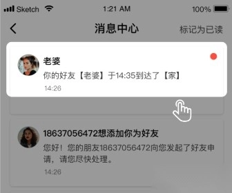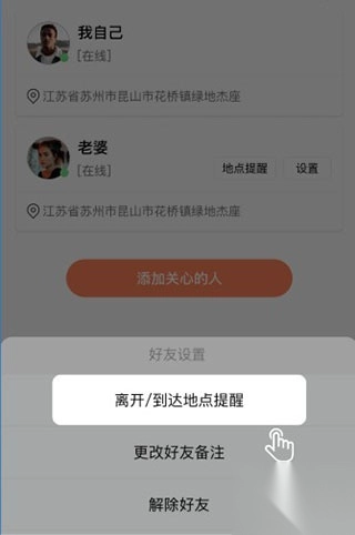 5、添加完成后,好友离开或到达某个地点,你均能收到实时通知。