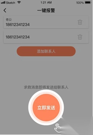 6、如若遇到紧急情况,点击立即发送即可发出求救信息;
