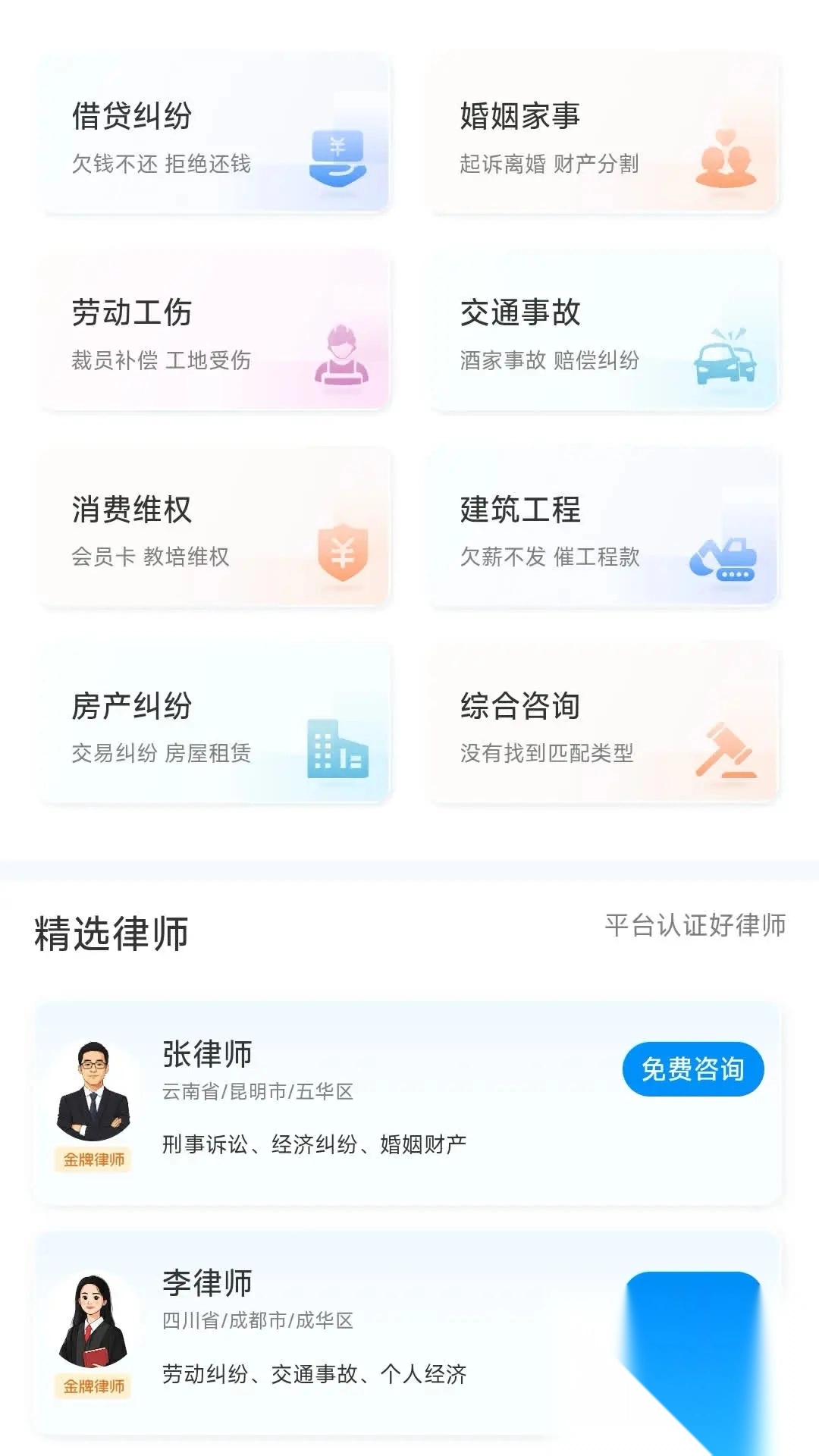 3、应对各类法律问题,涉及借贷纠纷、婚姻矛盾、工伤赔偿等常见范畴。