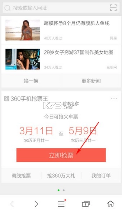 这个360手机浏览器抢票版,实际上和正版360手机浏览器差别不大。之所以叫抢票版,是因为每到年关,大家都为一张票而发愁。