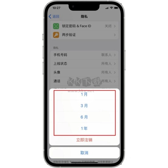 2.可以选择1月、3月、6月和一年,当我们选择好时间后,在此期间一次线都没上过的话,电报系统会自动删除账号,包括聊天记录、个人信息等等