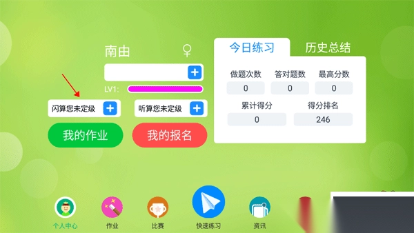1. 打开软件,首先切换至个人中心页面,在顶部找到显示的“闪算您未定级”按钮,点击该按钮进入。