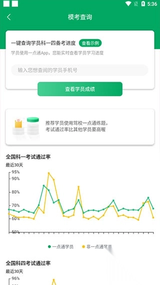 5、输入学员的手机号,可以轻松一键查询学员科一到科四的备考进度;