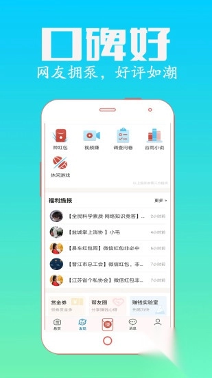 众人帮立志打造最契合大学生的赚钱平台。在这里,你既能投身线下兼职,也能舒舒服服躺着把钱赚!众人帮每日都推出海量妙趣横生的内容,还有超劲爆的优惠活动,只需轻轻一点,赚钱便是如此轻松。