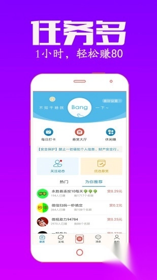 动动手指头,轻轻松松接任务。完成任务后还会获得丰富的奖励,每个月的零花钱妥妥的!