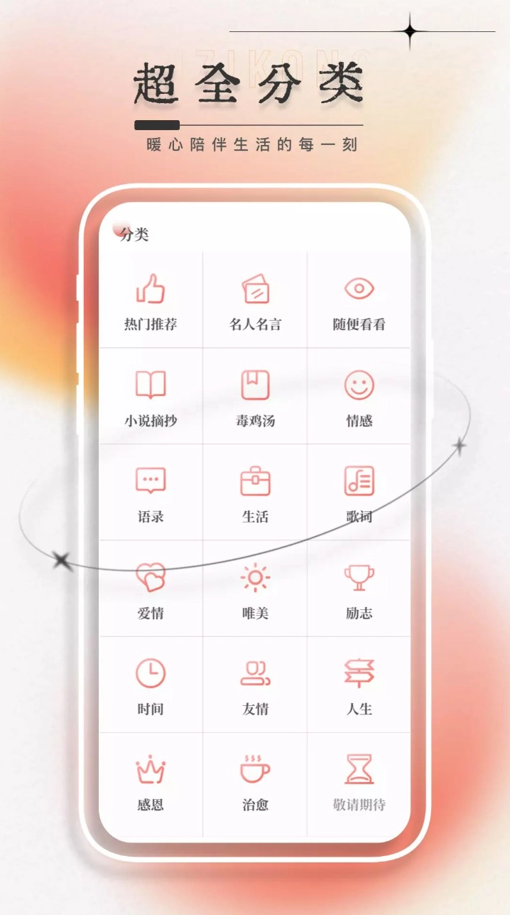 2. 分类齐全,都能看到很多不同的分类版块方便大家轻松挑选感兴趣的句子。