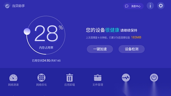 当贝助手精简版的下载安装,为电视端与投影设备量身打造了一款专业工具软件。它凭借简洁清爽的界面,无需登录就能使用的便利性,以及强大的清理、检测与优化功能,成为电视用户不可或缺的选择。借助这款软件,用户能够轻松提高电视运行速度,优化网络,确保视频流畅播放。