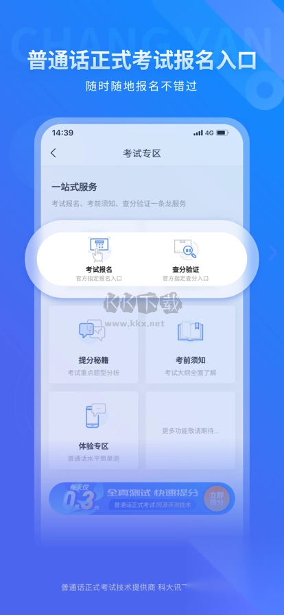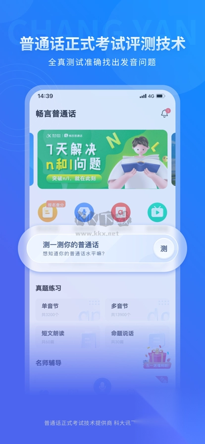 使用与国家普通话水平测试同源的测评技术,普通话测试全真模拟,涵盖普通话考试全题型,想要说一口流利的普通话,轻松考普通话!