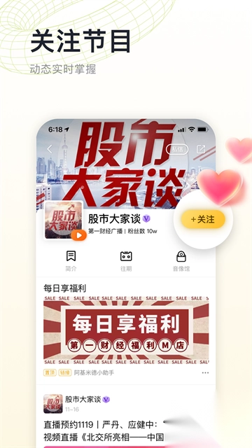 关注你喜欢的节目和主播,进入专属直播间,随时和主播在线聊天,感受真实互动乐趣。