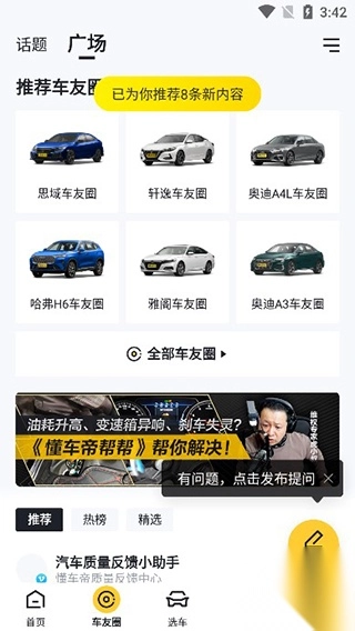 2、在车友圈当中,我们可以和其他用户一起交流汽车的问题;