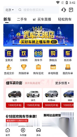 4、【优惠】多样的平台优惠活动,特价车、直播优惠券等,福利满满,让你买车更优惠!
