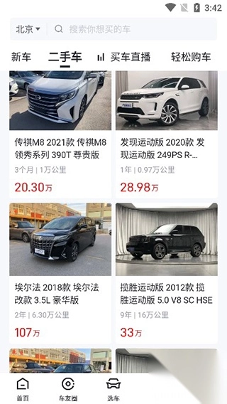 4、并且里面提供了二手车板块,轻松发现在售的二手汽车。