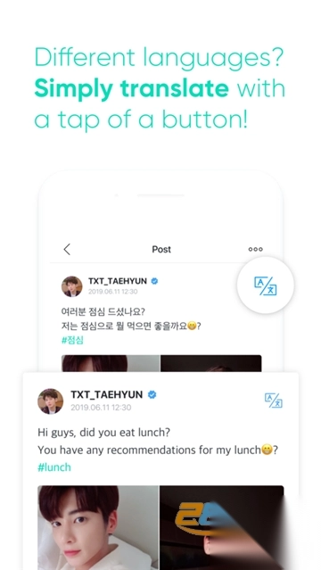 Weverse app是一个粉丝交流社区,在这儿,你能与志同道合的粉丝一同分享、交流自己喜爱的爱豆,还能和爱豆互动,与他们进行更亲密的接触。在Weverse app里,你可以分享爱豆的精彩瞬间,表达对他们的喜爱之情,与来自全世界的粉丝交流,结识更多有趣的人。此外,Weverse app还支持发布独家视频、创建粉丝帖子,要是你看不懂别国粉丝的发言,一键翻译功能就能帮到你!