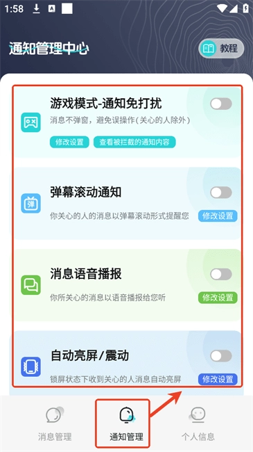 5.可在【通知管理】进行通知相关的设置