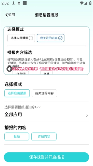 可以根据应用或关注的内容进行语音播报,让你不错漏消息。