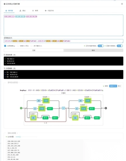 如下图所示,使用IPv4的正则规则,可视化图形让正则规则变得可读