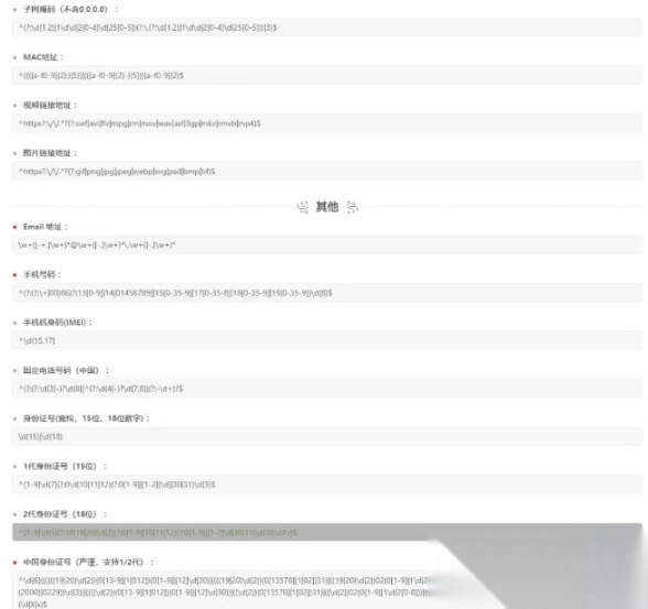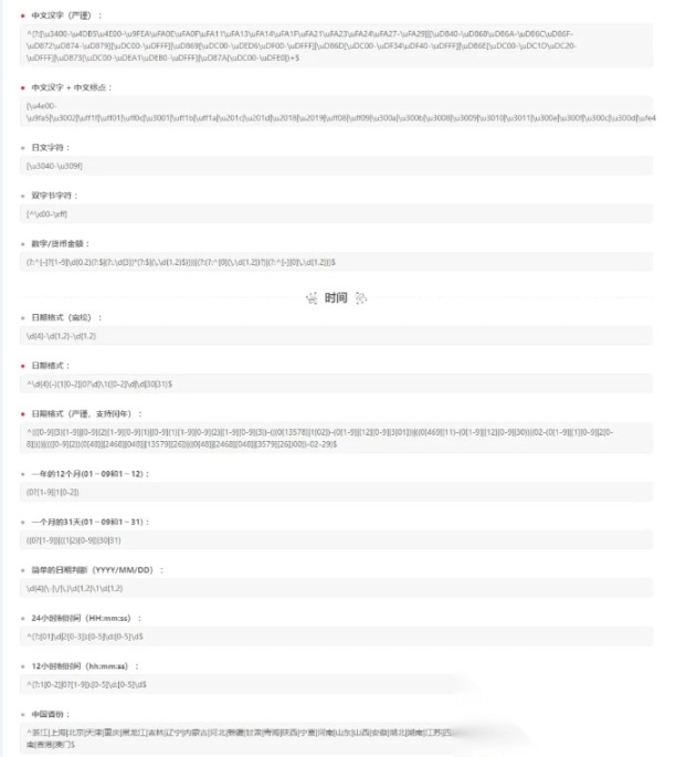 收录了常用的正则规则,可以