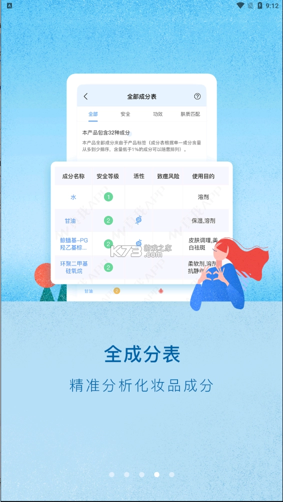 通过化妆品全成分表、结合个人肤质类型,结合独家算法,计算出您适合您的化妆品成分和不适合您的化妆品成分。为孕妇护肤、敏感肌和个人挑选护肤品提供参考。