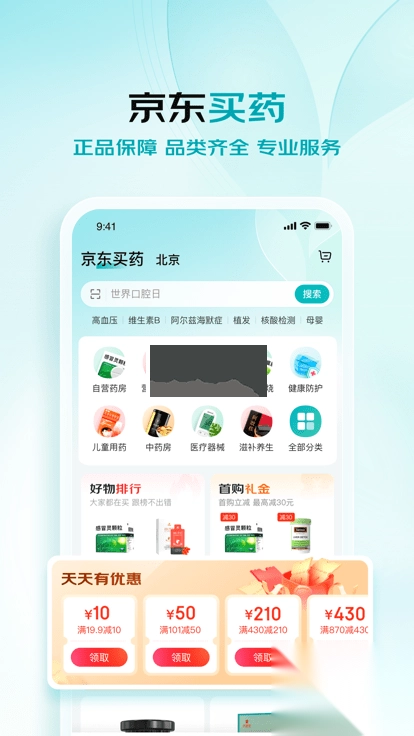 涵盖非处方药、医疗器械、保健品、滋补品等各类商品,由京东物流负责配送,快速送货上门。