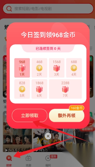 2、来到软件首页,如以下图示。新用户签到能够免费领取968金币资源哦。
