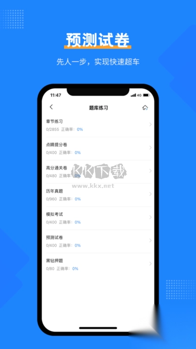 涵盖考点练习,提供全国通用卷与地区卷模拟练习,还设有依据固定考试比重随机抽题的真题考场。成绩单实时记录考试数据,能细致反馈考生近期学习状态及自我正确率的提升情况,极大地增强考生通过考试的信心。