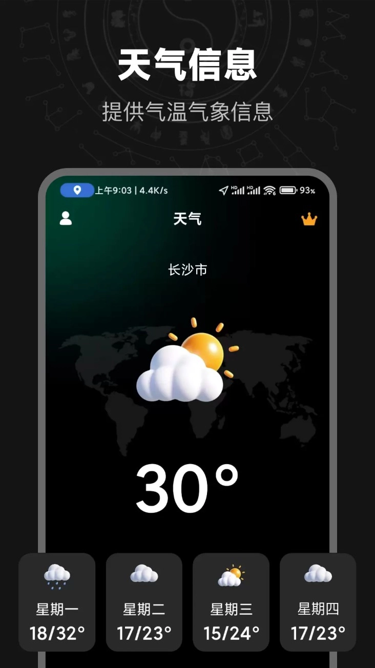 3. 天气预报:提供实时天气预报,出行旅游逛街约会运动天气早知道!