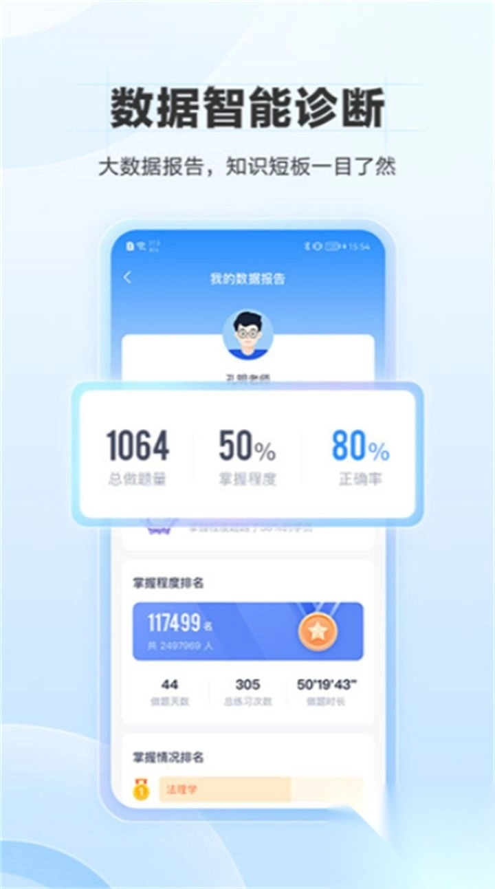 借助大数据生成学习报告,智能诊断知识短板,实时展示学习进度排名,提供针对性复习建议。