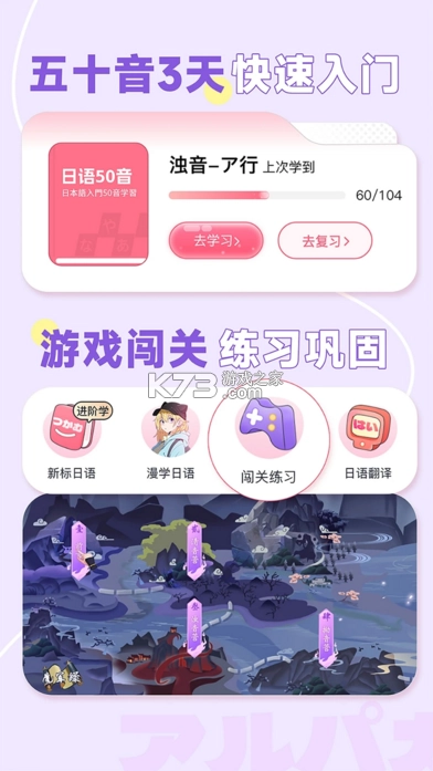 日语小白的福音来啦!专为零基础学习者精心打造,让你轻松开启日语学习之旅。这款学习软件针对日语各个阶段的学习需求定制,从日语五十音图,到日语单词、日语语法,循序渐进,助力你毫无压力地入门日语。