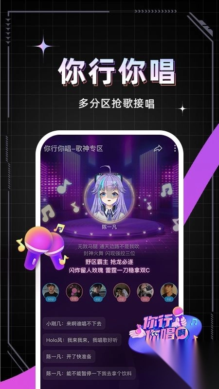 2. 【你行你唱】跨多个分区进行抢唱,即便跑调也能畅快淋漓地放声歌唱。还有超贴心的帮唱机制,助你迅速寻觅到音乐伙伴。