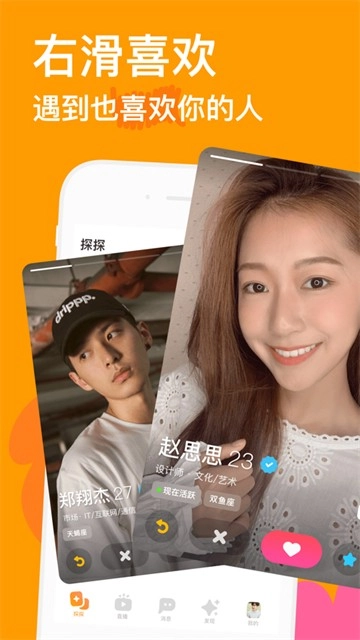 时下最流行的滑卡交友,左滑代表无感,右滑代表喜欢,用户可以在弹指间快速选出你的心仪之人。如果你喜欢的人恰好也喜欢了你,你们将瞬间匹配开启一场彼此试探的相遇大冒险。当然,如果没有匹配成功,你也不必气馁,好看好玩的年轻人都在这儿,总有一款适合你。