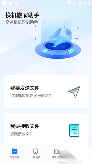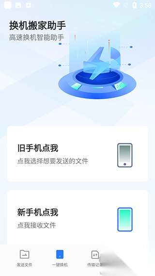 1、完成下载安装后,依据自身需求,在“发送文件”与“一键换机”这两个功能中做出选择。