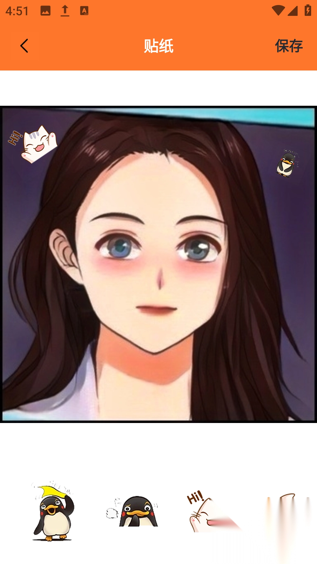 2. 轻点“贴纸”图标,导入图片,挑选贴纸,完成编辑后保存就可以啦。
