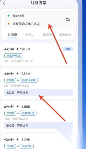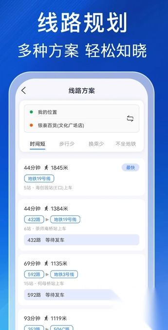 1、支持多站点换乘规划,app 会智能规划出最优换乘方案。