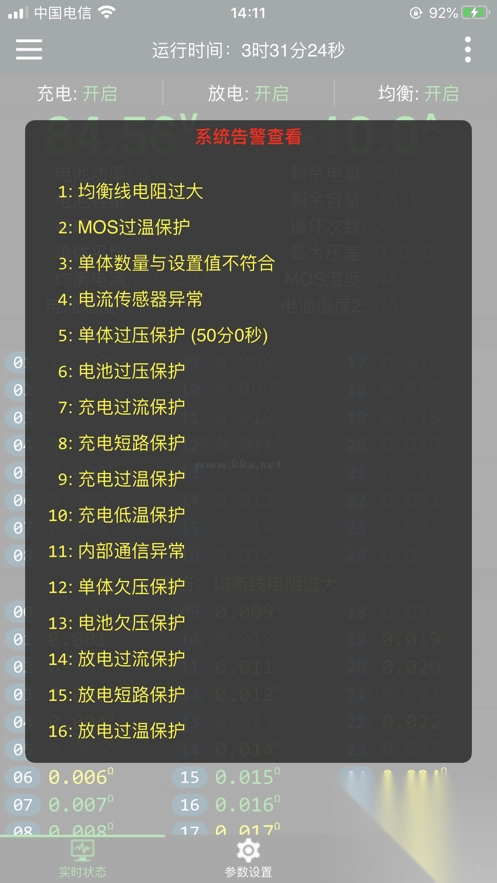 2、在主界面中,你可以查看电池的实时状态和参数,包括电压、电流、温度等。