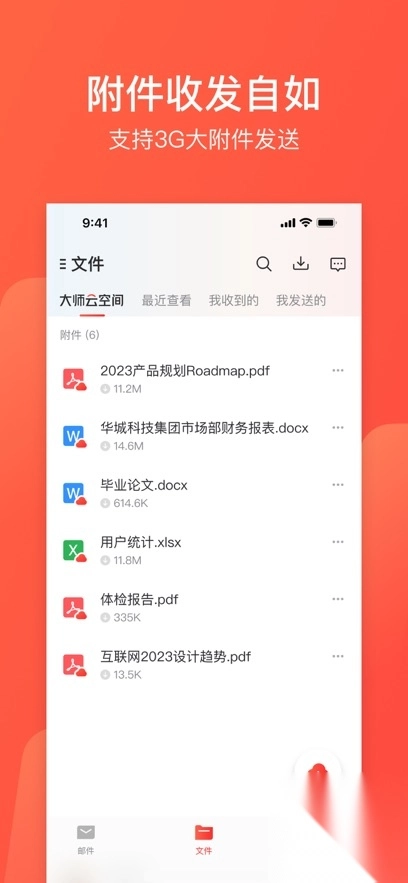 2、即便在外地出差,通过网易邮箱大师app进行网络通讯,也能及时接收文件。