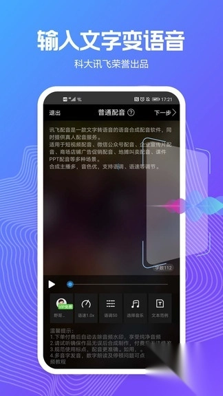 讯飞配音语音合成app,是由讯飞推出的免费文字转换软件。它具备简单易上手的文字转语音与配音功能,同时提供海量配音模板和背景音乐,方便网友选用。目前,这款软件已在多个行业领域得到广泛应用。还没体验过的用户,赶快前来尝试吧!