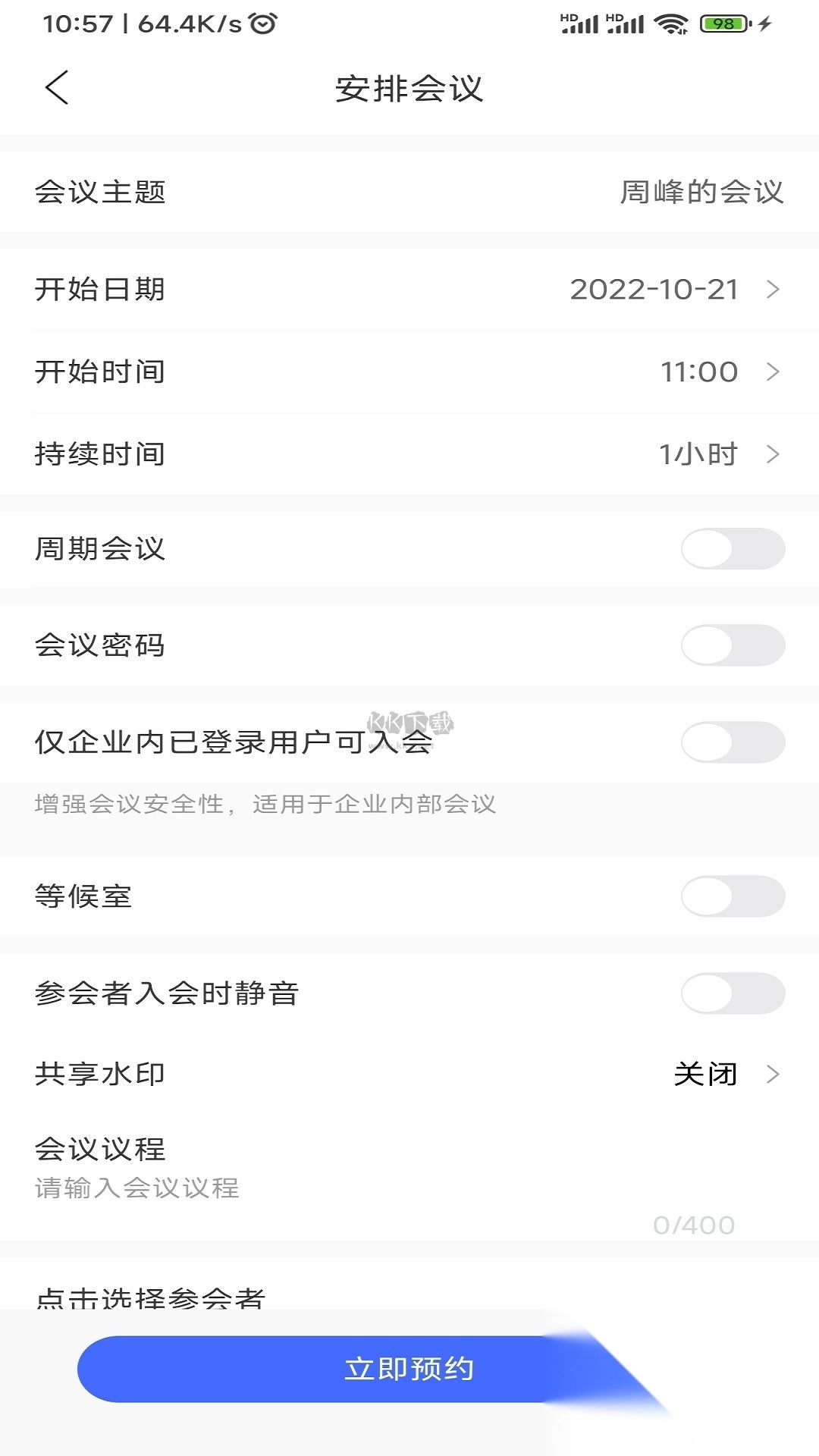 5、此后,管理人员便能够提前预约会议时间。