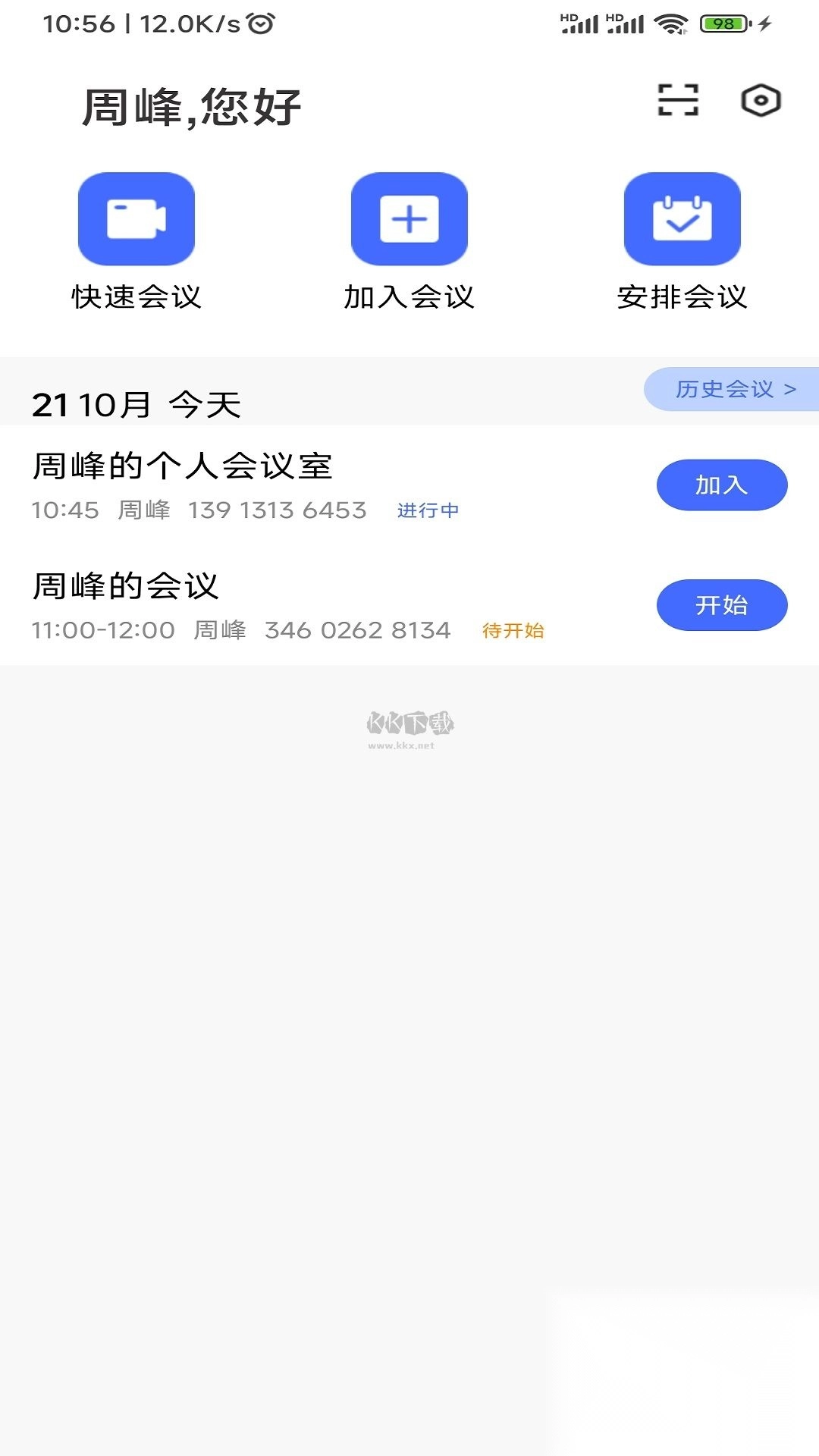 2、然后就可以点击对应的会议快速加入
