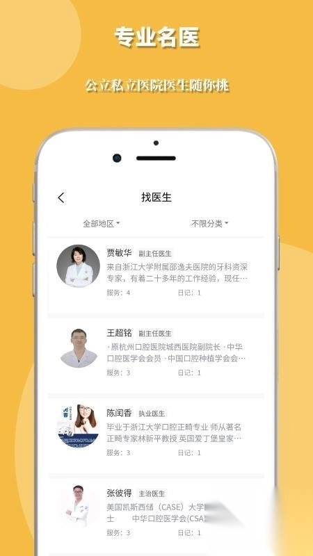 用户能够依据自身需求,自由挑选所需的牙医为自己服务。