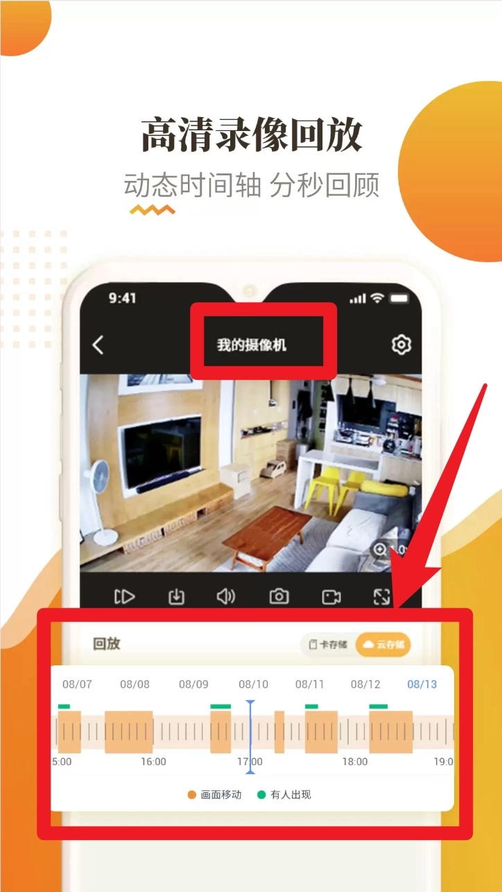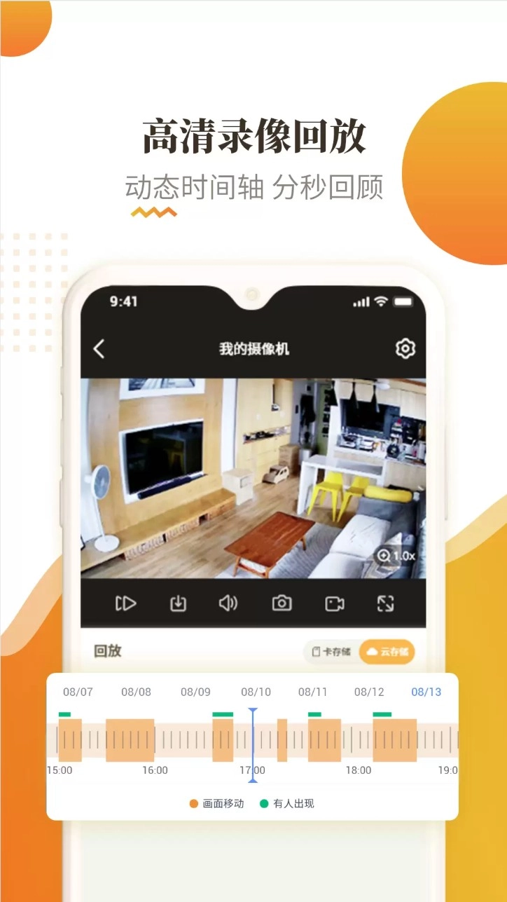 3. 高清回放,云存储的功能能将监控视频直接保存,支持视频随时回放。