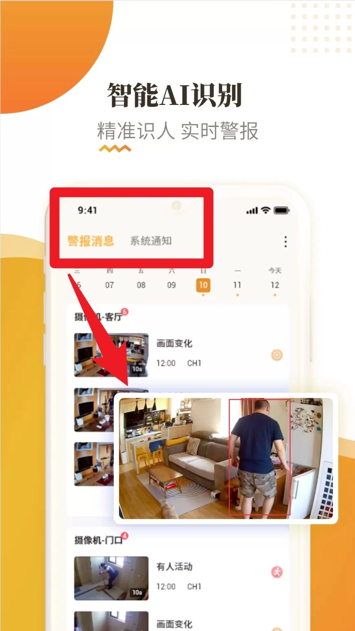 【移动侦测】具备移动侦测报警功能,时刻守护您与家人的安全。