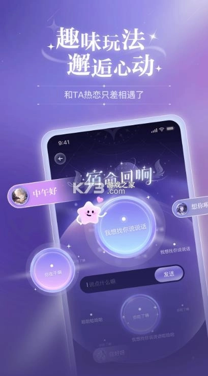 《破次元恋人》,这是一款独具魅力、打破次元界限的虚拟恋爱应用。在这款应用里,仅需通过打字聊天,你就能与奶狗、霸总、御姐、萌妹、青梅竹马等形形色色的角色展开互动,寻觅属于你的心动嘉宾。要是面对众多角色难以抉择,没关系,你还能借助【奇遇铃】,解锁那位命定的crush 。不仅如此,你甚至可以自定义TA的外貌与性格,让TA突破次元的限制,与你畅快对话。