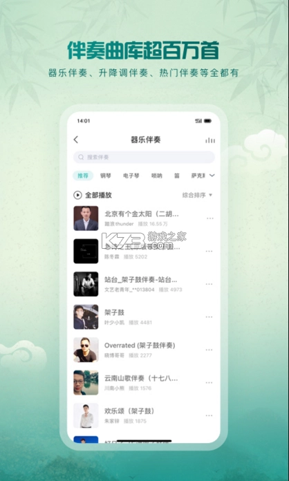 3、在该板块,大家能够找到自己需要的伴奏带,无需自行进行消音等操作。