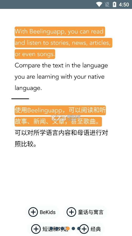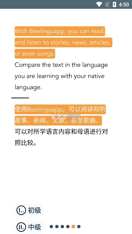 个性化学习体验方面,用户可自主选择想要学习的语言,借助阅读不同故事加以练习。Beelinguapp 支持母语对照功能,辅助理解新词汇和短语。跟随卡拉 OK 风格的动画,用户能更好地领会并模仿语音语调。