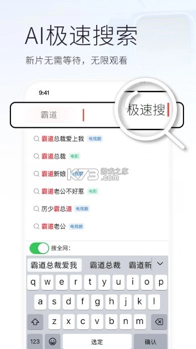 一键搜索:具备全网最新电影、电视剧以及综艺的快捷搜索能力,让用户追剧更为便捷。