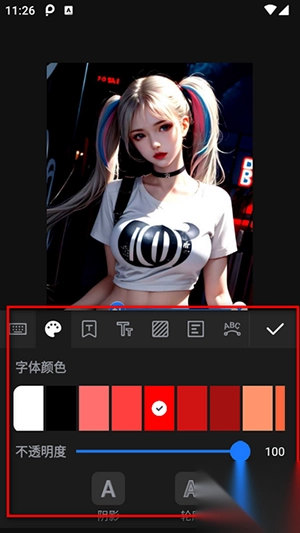 4、若要添加文字,选择t之后,便能够对字体的颜色及显示进行编辑。
