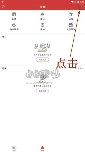 来到提醒的功能分区以后,我们点击上方的【+】号来添加我们生日。