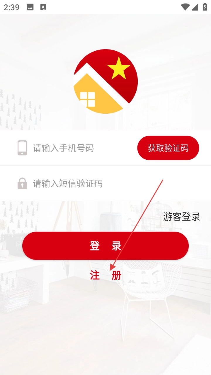 2、在登录页,点击【注册】,跳转至注册信息填写页。