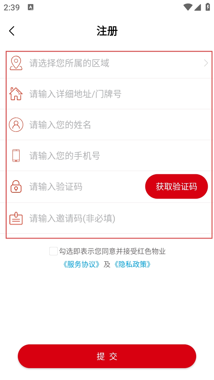 3、依次填写区域、地址、姓名、手机号等注册信息。