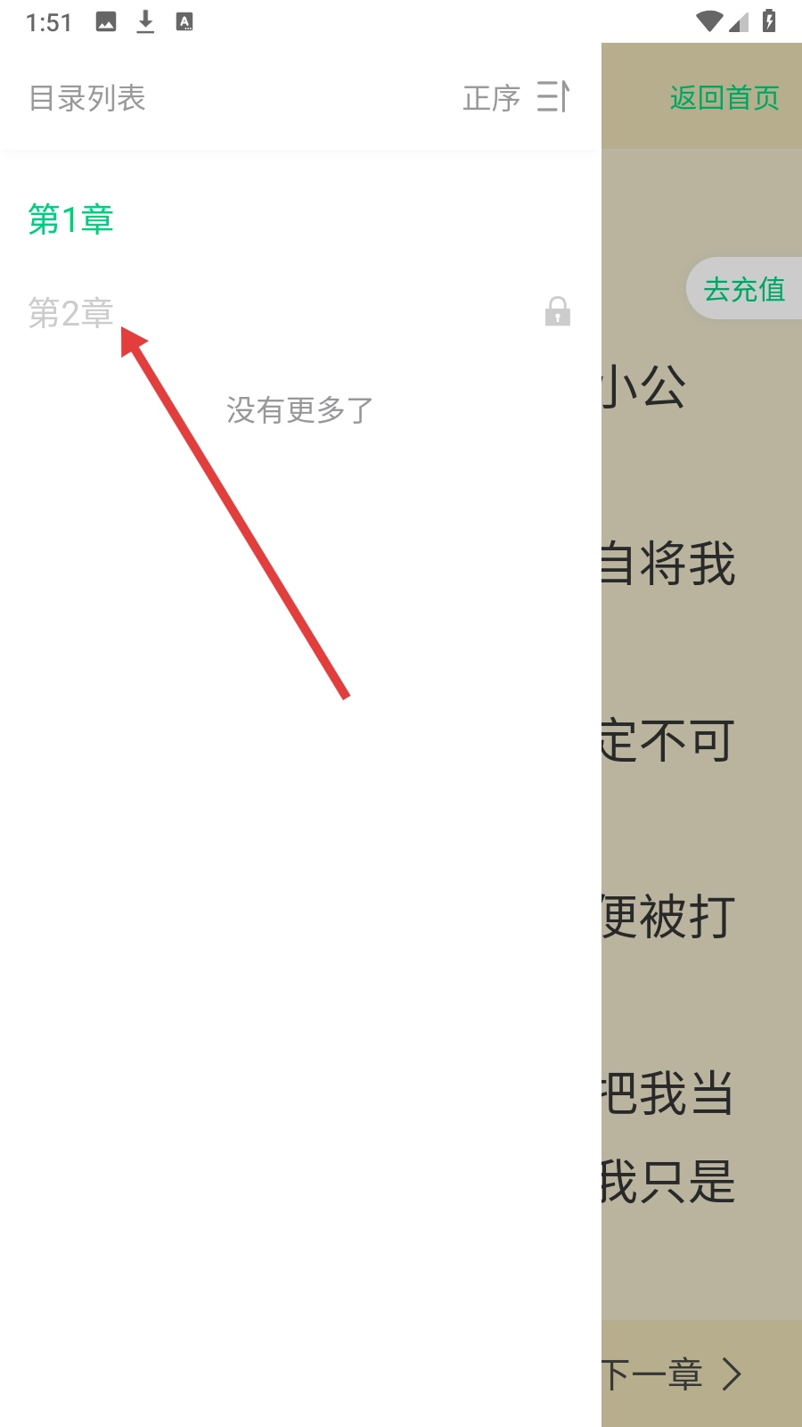 4、目录列表点击【第2章】,即可跳转至对应章节阅读。